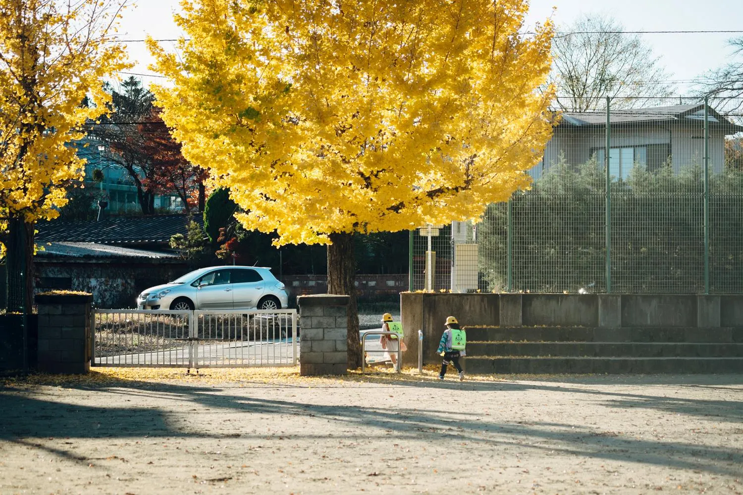 富士吉田の四季。11月で秋の紅葉した枯れ葉が舞っていたが、冬には気温は氷点下に達し、富士吉田は深い雪に包まれる。