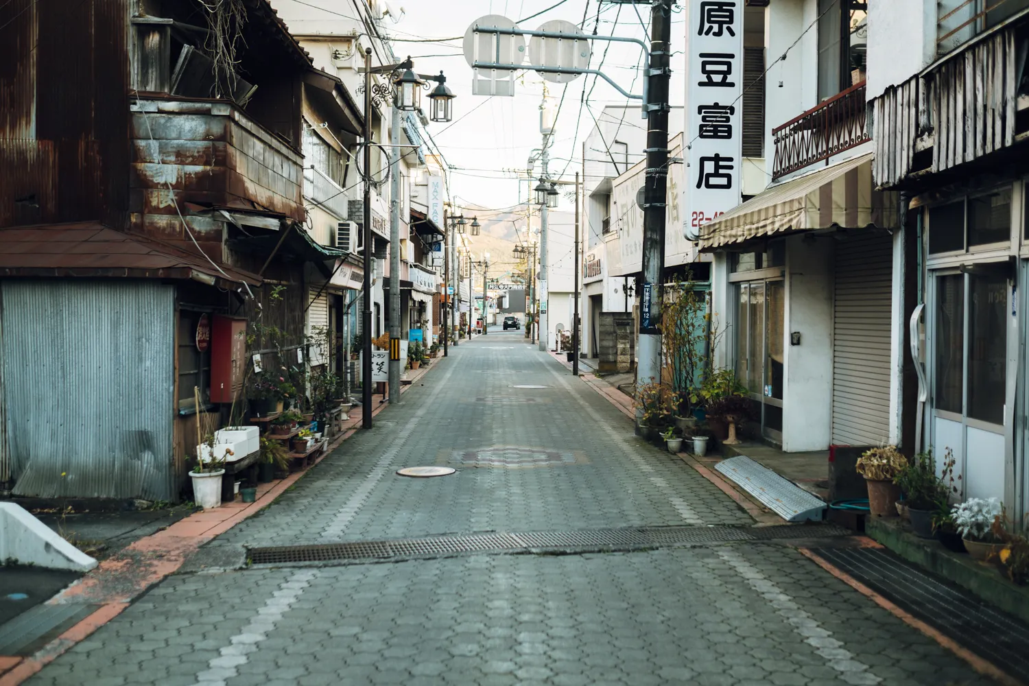 茜色の夕日に包まれる富士吉田の町で、僕らは富士吉田の路地裏へと去る。